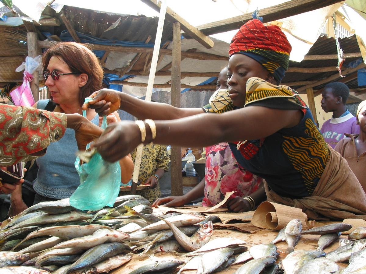 Hier in Macenta, wo es keine geteerte Straßen, kein Telefon, geschweige denn eine Mobilfunkverbindung gab, kein Restaurant in dem man abends mal ein kühles Bier trinken konnte, arbeitete Peter. Wir wohnten bei ihm in seinem geräumigen Haus in dem wir uns auch selbst versorgten. Die benötigten Lebensmittel kauften wir auf dem Markt. Die Waren wurden hier nicht nach Gewicht, sonden in kleinen Häufchen angeboten.