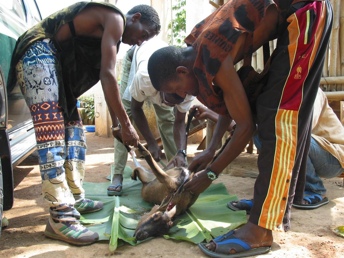 Gegen Mittag machten wir uns dann auf den weiten Weg. 800 km bis Macenta lagen vor uns, auf Straßen, die nicht immer unseren Vorstellungen entsprachen. Nach etwa 100 km war es dann auch mit dem Mobilfunk zu Ende und wir waren für die nächsten 3 Wochen gewissermaßen von der Außenwelt abgeschnitten. Unter optimalen Verhältnissen und mit entsprechender Fahrweise kann die Strecke nach Macenta an einem Tag zurückgelegt werden. Das wollte Peter uns aber nicht zumuten, so dass wir am späten Nachmittag einen Stopp mit Zwischenübernachtung in Mamou einlegten. Eine Weiterfahrt bei Dunkelheit war angesichts der teilweise abenteuerlichen Fahrzeugen, die uns begegnet sind, absolut nicht angebracht, ja fast lebensgefährlich.