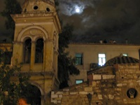 Am Syntagma-Platz stiegen wir um in die neue Metro und fuhren noch eine Station bis Monastiraki. Hier stiegen wir aus und bummelten durch die Gassen der Plaka. Der anschließende nächtliche Rundgang um die Akropolis bei Vollmond war ein Traum. Im "Odeon des Herodes Attikus" wurde noch gearbeitet und so setzten wir uns auf eine Bank und schauten dem Treiben eine Weile zu. Wieder zurück in der Plaka suchten wir uns noch eine Musikkneipe in der wir bei einer Flasche Wein Jung und Alt beim Tanz zuschauten.