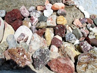 Der Abbau von Mineralien wird auf Milos in großem Maß betrieben. Es ist uns aber positiv aufgefallen, dass alle beladenen LKW's immer mit Planen abgedeckt waren und die unbefestigten Transportwege ständig gewässert wurden, um das Einstauben der Landschaft auf ein Minimum zu beschränken.