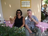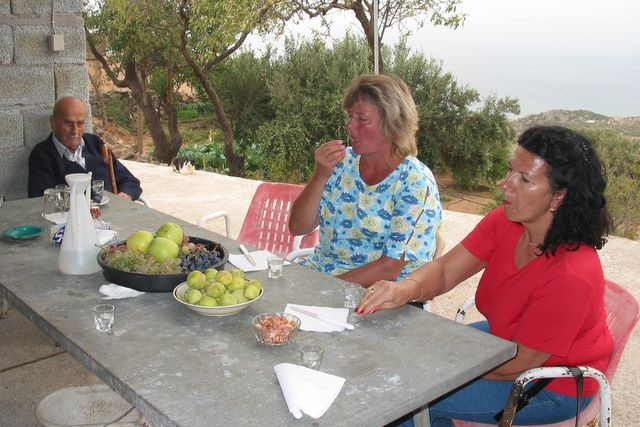 Bei Vaios trifft man auch immer interessante Leute. So kamen wir im Urlaub 2004 (September) mit Manolis am Nachbartisch ins Gespräch, der uns spontan für den nächsten Abend in die Berge zum Rakibrennen einlud.
