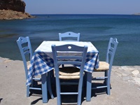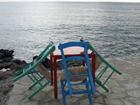 Abends führt uns der Weg durch die engen Gassen des Ortes in die Taverne Vaios. Ein Familienbetrieb in dem man mit Köstlichkeiten und Herzlichkeit verwöhnt wird. Hier kocht der Chef persönlich. Vaios stammt aus Nordgriechenland und deshalb gibt es hier auch manchmal Gerichte, die in Kreta nicht so üblich sind. Bevor man am Tisch Platz nimmt, ist nach alter griechischer Tradition erst mal der Gang durch die Küche angesagt. Die Topfdeckel werden gelüftet, der Backofen geöffnet, und so kann man sich ein Bild der heute angebotenen Leckereien machen. Danach kommt die Qual der Wahl. Nach dem Essen kredenzt Vaios seinen ausgezeichneten Raki aus seiner Plastikkanne. Zu fortgeschrittener Stunde werden die Gläser des öfteren nachgefüllt.