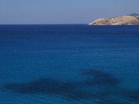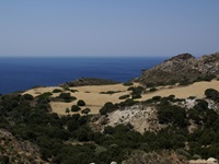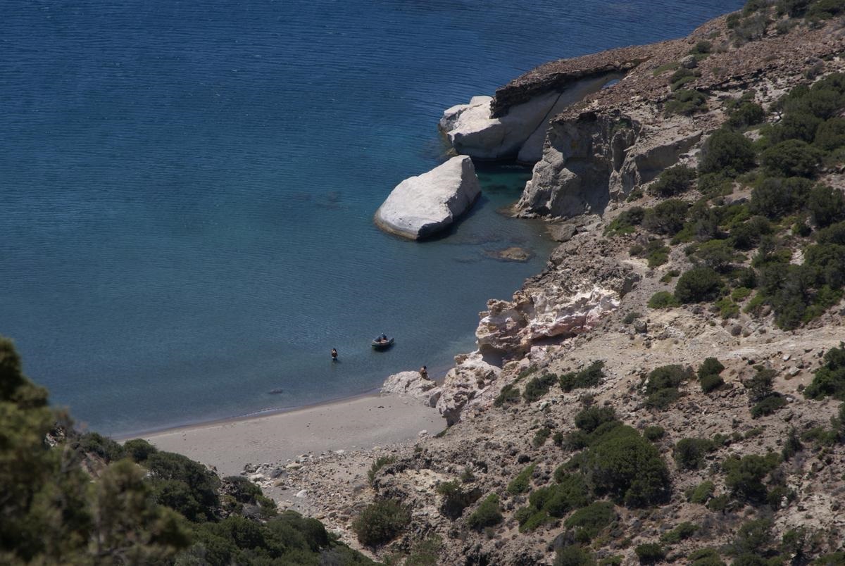 Man kann die Küste noch ein ganzes Stück in einiger Höhe am Berghang nach Westen weiterfahren. Wir waren bis Gerontas. Der wunderschöne Strand ist von oben einsehbar, wir sind aber den steilen Weg (ca. 10 min.) nicht hinunter gegangen.
