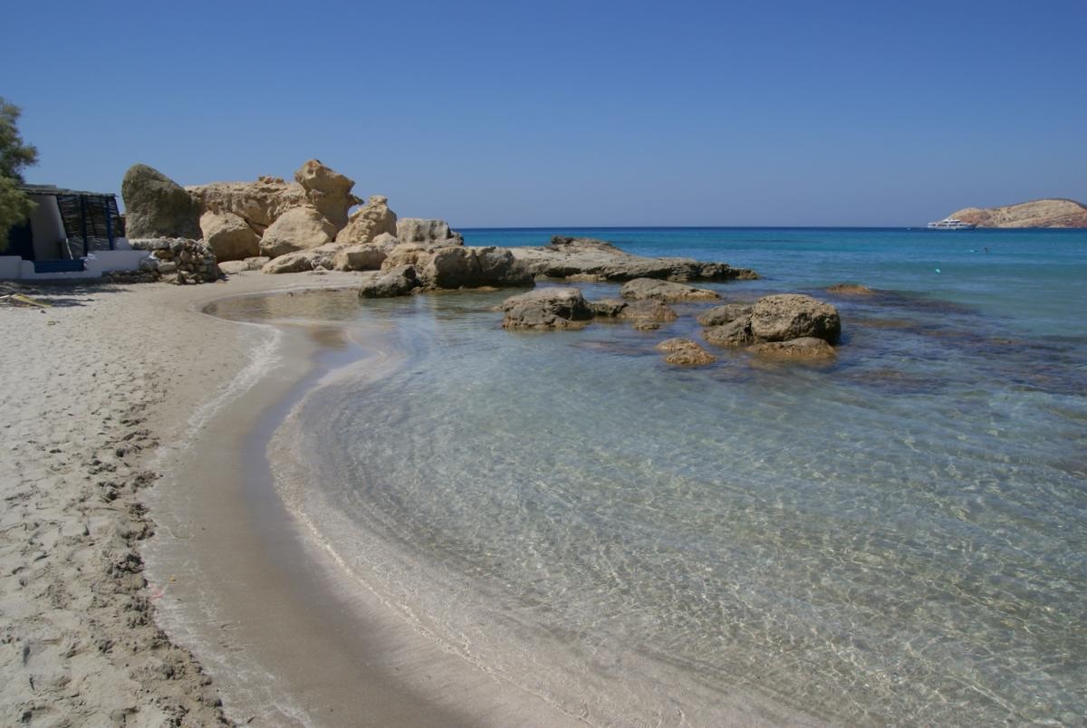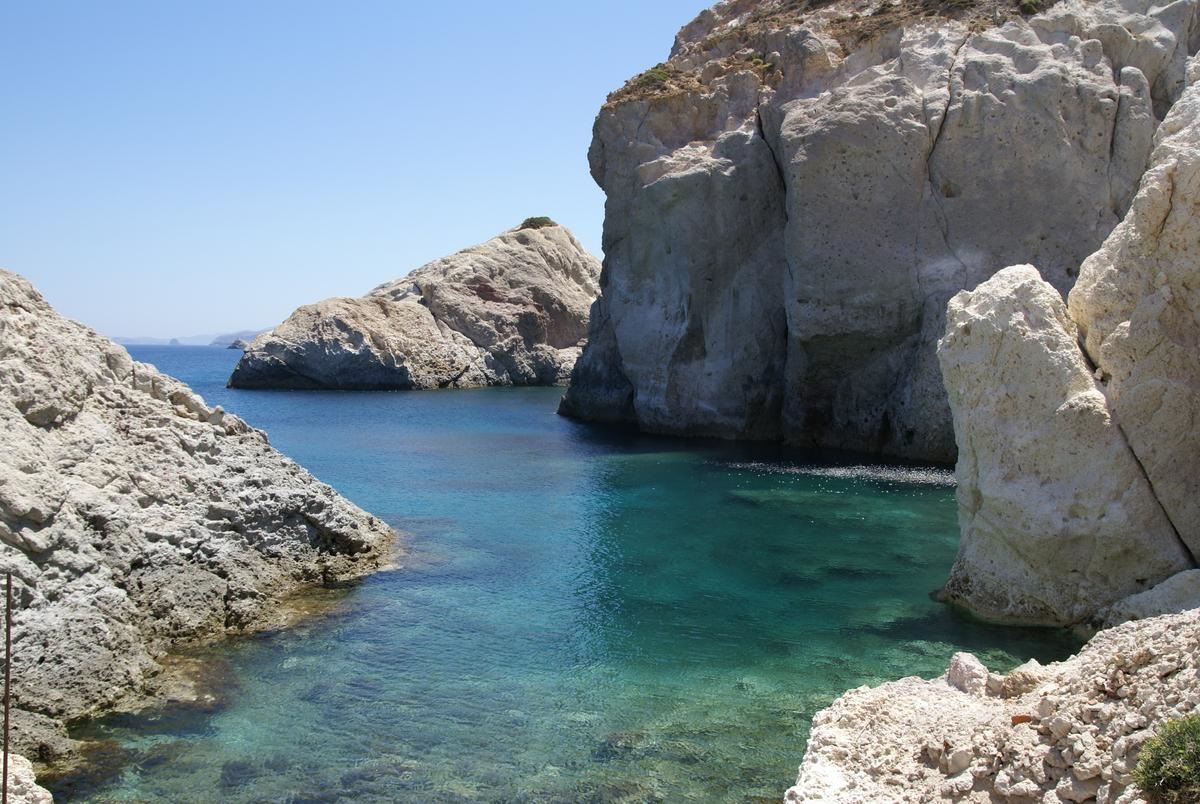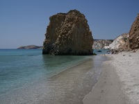 Wenn man die Nordküste von Pollonia in Richtung Plaka fährt, kommt man an einigen eigentümlichen Küstenformationen vorbei. So hat das Meer bei Papafrangas einen nur wenige Meter breiten Einschnitt in den Fels gegraben, der dann in einem kleinen Sandstrand mit einer Grotte mündet. Wer unbedingt hier baden möchte, erreicht den Strand über einen schmalen Pfad, der steil hinunter führt.