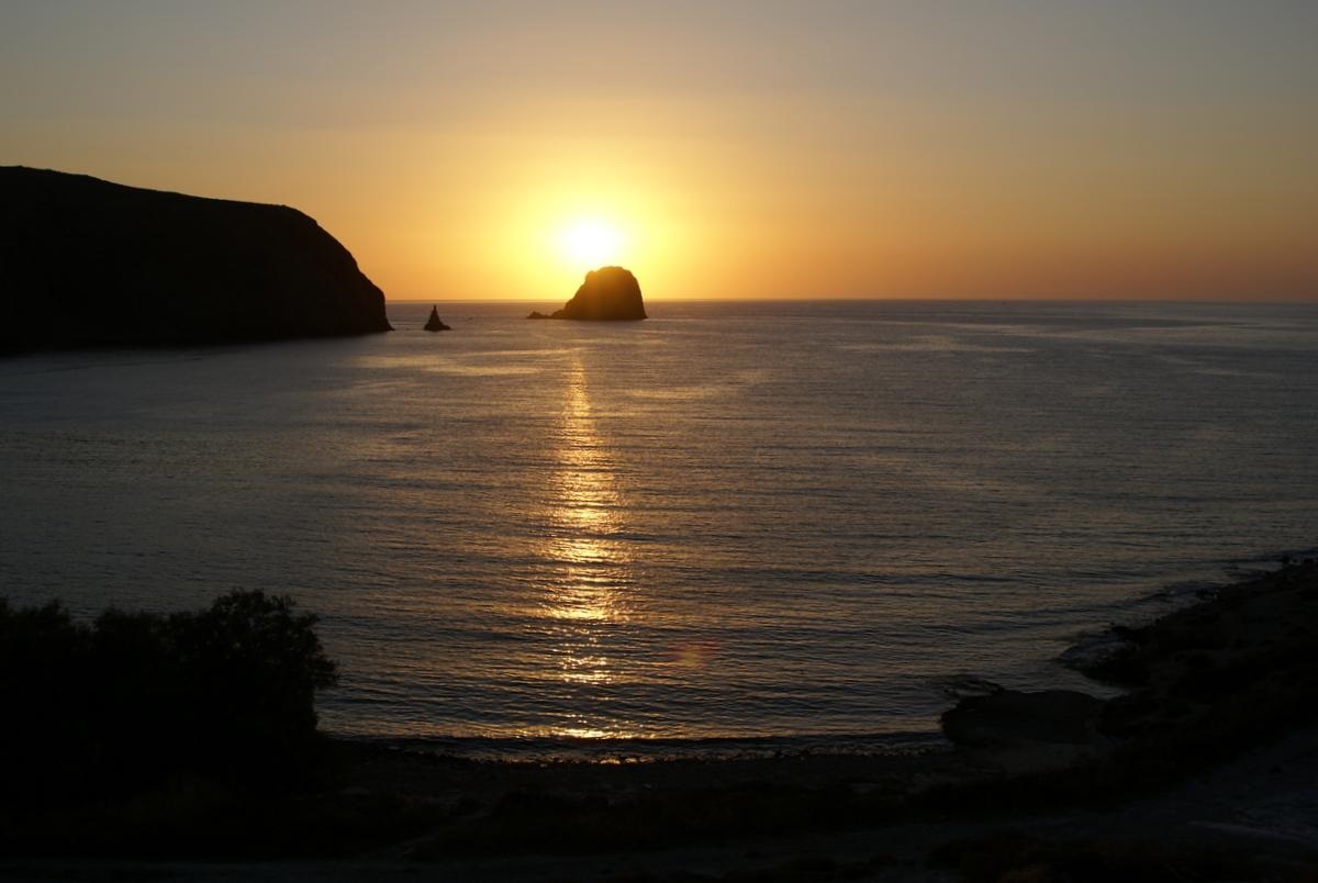 Wie vor 5 Jahren haben wir wieder in Andreas Rooms bei Andreas und Brigitte in Pollonia, am östlichsten Punkt von Milos gewohnt. Der Ausblick ist einfach ein Traum! Überall Meer. Die Küche nach Westen zum Sonnenuntergang, ein kleiner Balkon nach Osten mit Blick zum Hafen und die große Terasse, jetzt auch mit Sonnendach aus Stroh, so dass man sich jetzt auch zur Mittagszeit hier aufhalten konnte.