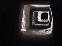 Im hinteren Bereich, in dem kleinen Tal, ist in den Felsen parallel zur Außenwand ein künstlicher Gang mit mehreren Zugängen gegraben, dessen Zweck uns aber nicht bekannt ist.