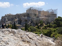 Von der Dachterasse hatten wir einen wunderschönen Blick auf die nahegelegene Akropolis, die leider noch immer für Restaurationsarbeiten eingerüstet ist. Trotzdem schaut man immer wieder ehrfurchtsvoll auf dieses riesige Monument einer vergangenen Kultur.