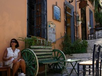 Direkt am Hang der Akropolis liegt Anafiotika. In diesem alten Stadtviertel fühlt man sich an einen anderen Ort versetzt. Enge Gässchen mit vielen Tavernen locken zum Verweilen. Aber die Zeiten haben sich geändert. Wenn man sich früher eine Taverne nur nach Gutdünken ausgesucht hat, so lohnt sich heute vorher ein Blick in die Speisekarte. Es gibt heute keine Standardpreise für die Standardgerichte mehr. Allein beim Frapee haben wir Preise von 2 - 4 EUR gesehen. Vier EUR (!!!) für 2 Löffel Neskaffee etwas Zucker und ein paar Tropfen Milch. Und das war nicht etwa ein Restaurant der besonderen Klasse.