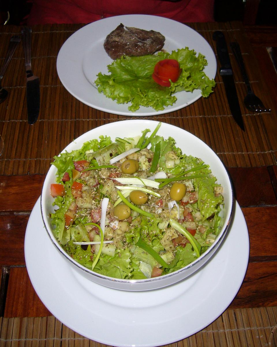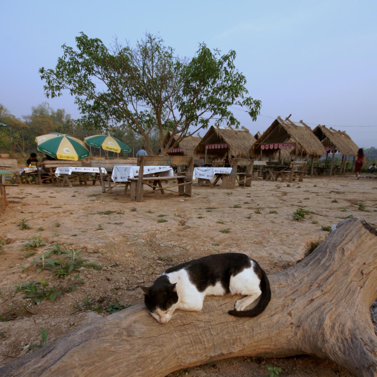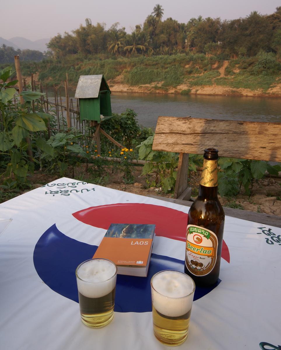 Im Restaurant des Resorts kann man ausgezeichnet essen. Der Tag fängt an mit einem schönen Frühstück mit Blick über den Fluss auf die im Morgendunst liegenden Berge und endet mit einem leckeren Essen nach laotischer Art oder auch europäisch. Isst man hier ein Steak, dann ist es natürlich vom Wasserbüffel! Köstliche Salate gibt es dazu, sogar mit Oliven garniert.