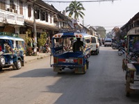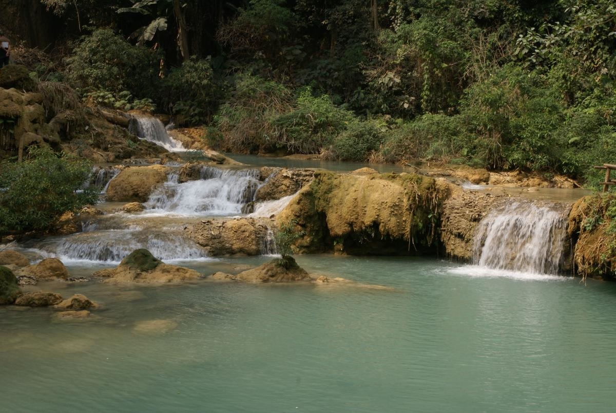 Ein weiteres Ziel etwas ausserhalb von Luang Prabang (mit dem Tuk-Tuk ca. 45 min.) ist der Kuang Si-Wasserfall. Zu Fahrten außerhalb der Stadt müssen sich die Tuk-Tuk-Fahrer an der Zentralstation abmelden und eine Abgabe entrichten. Unterwegs werden sie auch an versschiedenen Stationen kontrolliert.
