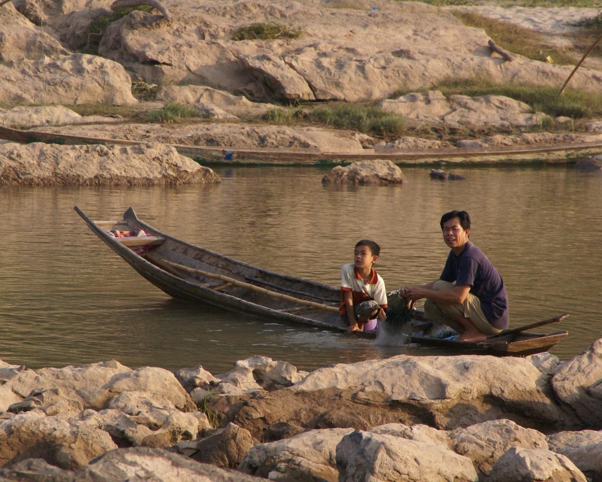 Zum Abend werden Schiffsfahrten auf dem Mekong angeboten. Hier kann man sich in etwa zwei Stunden vom Schiff aus das Flussleben anschauen. Die Fischer auf ihren Booten, die spielenden Kinder am Ufer und zum Schluss noch einen schönen Sonnenuntergang.