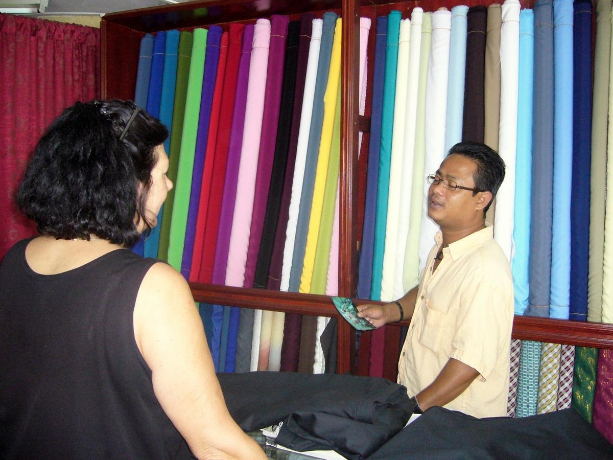Auch dieses Jahr haben wir unseren Schneider besucht. Wir haben einen Sommeranzug und ein Theaterkostüm für Wicket in Auftrag gegeben. Es ist kein Massenbetrieb wie wir es von Ko Samui kennen. Hier steht niemand auf dem Gehweg und versucht uns in den Laden zu ziehen. Der Schneider hat 3 Angestellte und liefert hervorragende Arbeit ab. Schon bei der ersten Anprobe saß alles fast perfekt, es waren nur noch kleinere Korrekturen notwendig. Das Paket wurde versandt und uns zu Hause innerhalb einer Woche zugestellt.