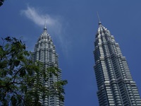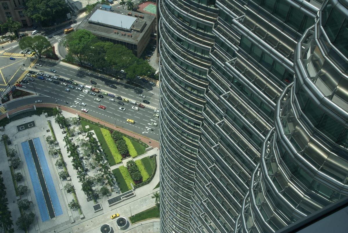 In Kuala Lumpur angekommen, verdüsterte sich der Himmel während der Taxifahrt immer mehr und kaum dass wir im Hotel angekommen waren, fing es an zu regnen. Wir wohnen hier im Hotel Impiana in der nähe des KLCC bei den Petrona Towers, diesmal leider ohne Sicht der Türme. Nachdem der Regen dann irgenwann mal etwas nachgelassen hat, konnten wir wenigstens das Einkaufszentrum KLCC trocken erreichen. Das Einkaufszentrum ist bis 22:00 Uhr geöffnet. Nachdem wir es kurz davor verlassen haben, hatten wir doch noch einen trockenen Blick auf die Towers.