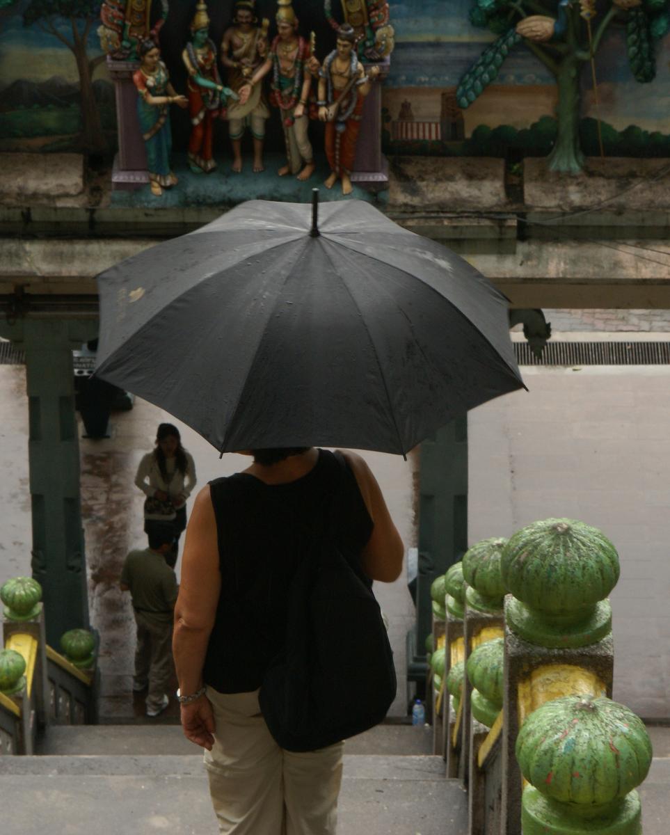 Jetzt hatte der Regen auch schon etwas nachgelassen und wir konnten die Batu-Caves besichtigen. Eine beeindruckende Stätte. Wir sahen Postkarten, auf denen die gesamte Treppe mit Menschenmassen gefüllt war.