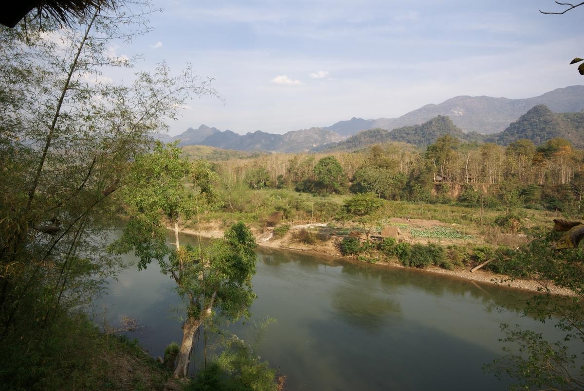 In herrlich ruhiger Lage bezogen wir unseren Bungalow direkt unten am Fluss. Die fünf Häuser der Anlage sind im laotischen Stil erbaut mit viel Liebe zum Detail. Von der Terasse hat man einen herrlichen Blick auf den Fluss und die Landschaft.