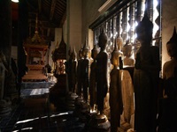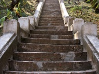 Eine Sehenswürdigkeit in der näheren Umgebung ist die Höhle von Pak Ou. Man erreicht sie auf dem Mekong, das ist die weniger staubige Variante. Wir wählten das Tuk-Tuk, weil wir am Tag dovor schon die Abendrundfahrt mit dem Schiff gemacht hatten.. In einer 1-stündigen Fahrt erreichten wir das gegenüberliegende Flussufer.