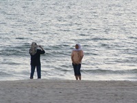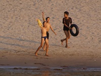 Während sich tagsüber überwiegend die Touristen am Strand tummeln, gehört der Strand abends wieder den Einheimischen. Sie kommen zum Sonnenuntergang aus ihren Häusern und erfreuen sich an der schönen Abendstimmung. Jungs und Mädchen (mit und ohne Kopftuch) spielen miteinander Fußball, Pärchen schlendern am Strand entlang, Frauen baden teil- und vollverschleiert. Es ist ein interessanter Anblick einer fremden Kultur.