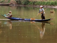 Von hier aus kann man die Fischer beobachten, wie sie ihre Netze auswerfen. Ein richtig schönes Foto hiervon blieb mir aber versagt. Entweder sie warteten mit dem Wurf, bis sie mit ihrem Boot gerade hinter einem Baum verschwunden waren, oder ich war gerade in einem Buch vertieft, als ich das "Platsch" hörte, direkt vor meinen Augen mit freier Sicht. Ich glaube, die machten das absichtlich!