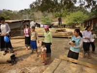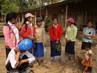 Nicht weit vom Lao Spirit Resort liegt das kleine Dorf Xieng Lom. Man kann es gut zu Fuß erreichen. Man kann sich hier ungezwungen umsehen, die Leute sind sehr freundlich und lassen sich auch fotografiert werden, fordern sogar manchmal dazu auf, ohne dann aber gleich die Hand auszustrecken. Ein freundliches Lächeln und das Zeigen der Fotos auf dem Display erfreut hier alle.