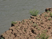 Die Fahrt mit dem Boot zum Tad Sae-Wasserfall dauert vom Lao Spirit Resort ca. 15 Min. Der Wasserfall besteht in dieser Jahreszeit leider nur aus ein paar schmalen Rinnsalen, mit etwas Phantasie kann man sich aber ausmalen, wie es hier zur Regenzeit aussieht. Aber die Fahrt dorthin durch die herrliche Flusslandschaft, vorbei an badenden Wasserbüffeln, lohnt sich auch zu dieser Jahreszeit.