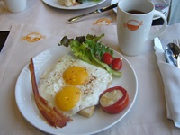 Wir hatten uns ein Executive-Zimmer gegönnt und hatten vom Zimmer eine herrliche Aussicht über den Fluss und die Stadt. Von der Dachterasse der Executive-Lounge hatten wir abends zur "Happy Hour" einen noch schöneren Blick, dazu gab es freie Getränke nach Wahl und kleine leckere Häppchen. Hier oben gab es auch das Frühstücksbuffet. Der geringe Aufpreis gegenüber dem normalen Zimmer hat sich gelohnt.