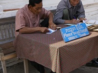 Kurz nach der Ankunft machten wir unsere erste Tour durch die Hauptstraße und suchten zuerst einen Geldwechsler. Für 260$ bekamen wir 2.100.000 KIP.
