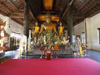 Bei den meisten Tempeln wird auch ein kleiner Obulus verlangt, warum auch nicht! Die Anlagen müssen erhalten bzw. restauriert werden, da ist es nur recht, wenn man hierzu einen kleinen Beitrag leisten kann. Die größte und auch wichtigste Tempelanlage ist das Wat Xieng Thong, es liegt am Ende der Stadt, dort wo der Nam Khan-Fluss in den Mekong mündet.