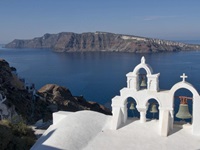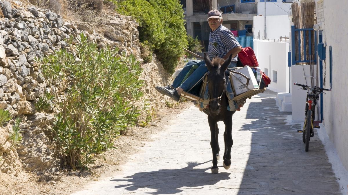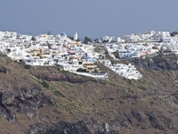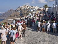 Wenn man die Orte Fira und Oia erkunden will, sollte man früf aufstehen. Bis etwa 10 Uhr kann man noch ungestört durch die Gassen schlendern, dann wird es langsam voll. In Fira treffen die Landungsboote der Kreuzfahrtschiffe ein und bringen die Touristen mit der Seilbahn direkt in den Ort. Die traditionellen Esel, die noch auf Kundschaft warten, könnten diesen Ansturm allein nicht mehr bewältigen.