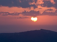 Die klare Luft, die an einigen Tagen herrschte, bescherte uns beeindruckende Sonnenuntergänge. Die Sonne war noch am Horizont blendend gelb, wie man es selten erlebt.