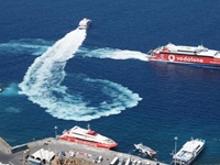 Nur eine Stunde mit der Schnellfähre trennen bei direkter Verbindung diese beiden Inseln, die wir auf unserer diesjährigen Griechenlandreise besucht haben und doch sind sie so unterschiedlich. Die Anreise erfolgte mit dem Flugzeug direkt nach Santorini und von dort mit der Express-Fähre in etwa drei Stunden über Naxos und Koufonissi nach Amorgos.