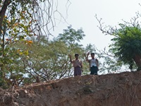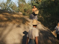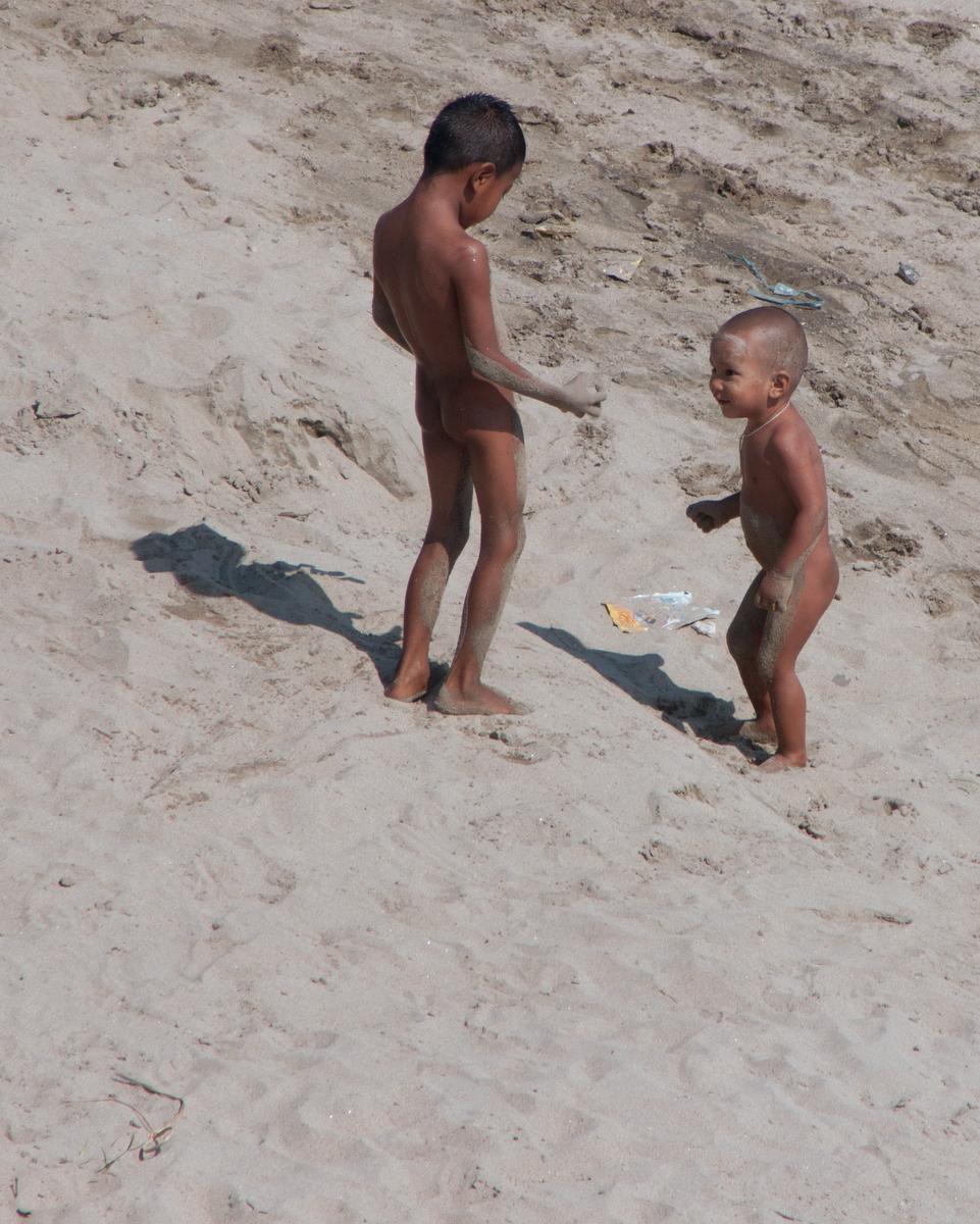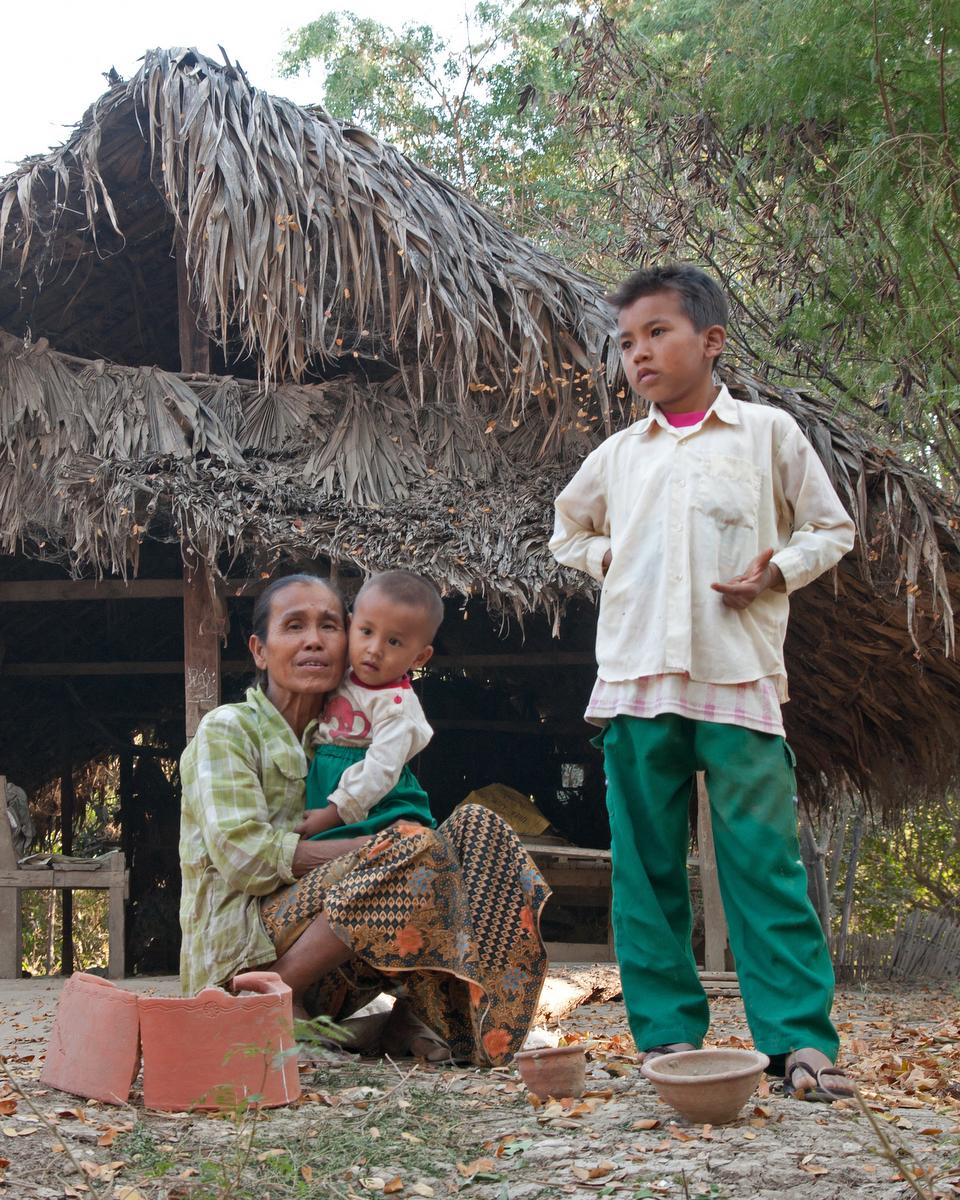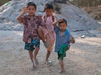 Gerne ließen sie sich auch bei ihrer Arbeit fotografieren. Hier wurden Töpfe geformt, dort mit Muster versehen, an einem anderen Platz wurden die Töpfe gebrannt. Unter einem riesigen Berg, gleich einem Kohlenmailer, verbargen sich ca. 4000 Töpfe mit Brennmaterial, abgedeckt mit Sand und Gras. Ein paar Kinder begleiteten uns auf dem Weg und schenkten mir sogar ein paar kleine Lehmfiguren. Keine Bettelei, nur fröhlich lachende Gesichter.Am Ende des Dorfes saß am Wegesrand eine junge Frau und bot mir einen kleinen hübschen Elefanten an. Ich wollte ihn erst gar nicht nehmen, weil ich von den Kindern schon einen hatte. Sie streckte ihn mir mit einem flehenden Blick entgegen, dass ich ihn doch nehmen sollte. Ich war gerührt!