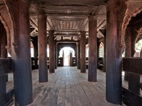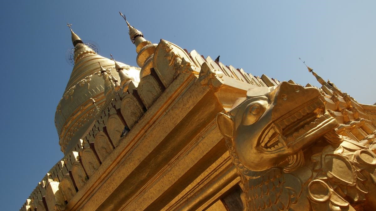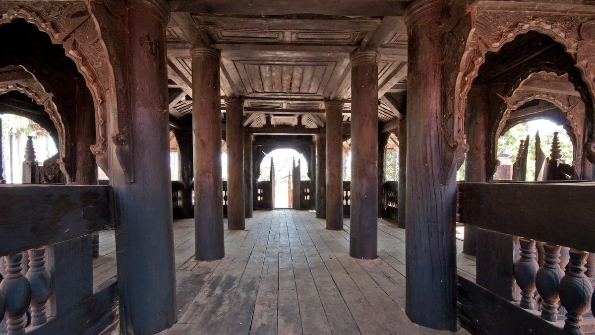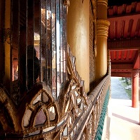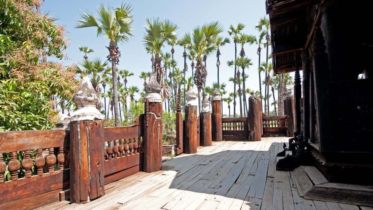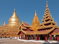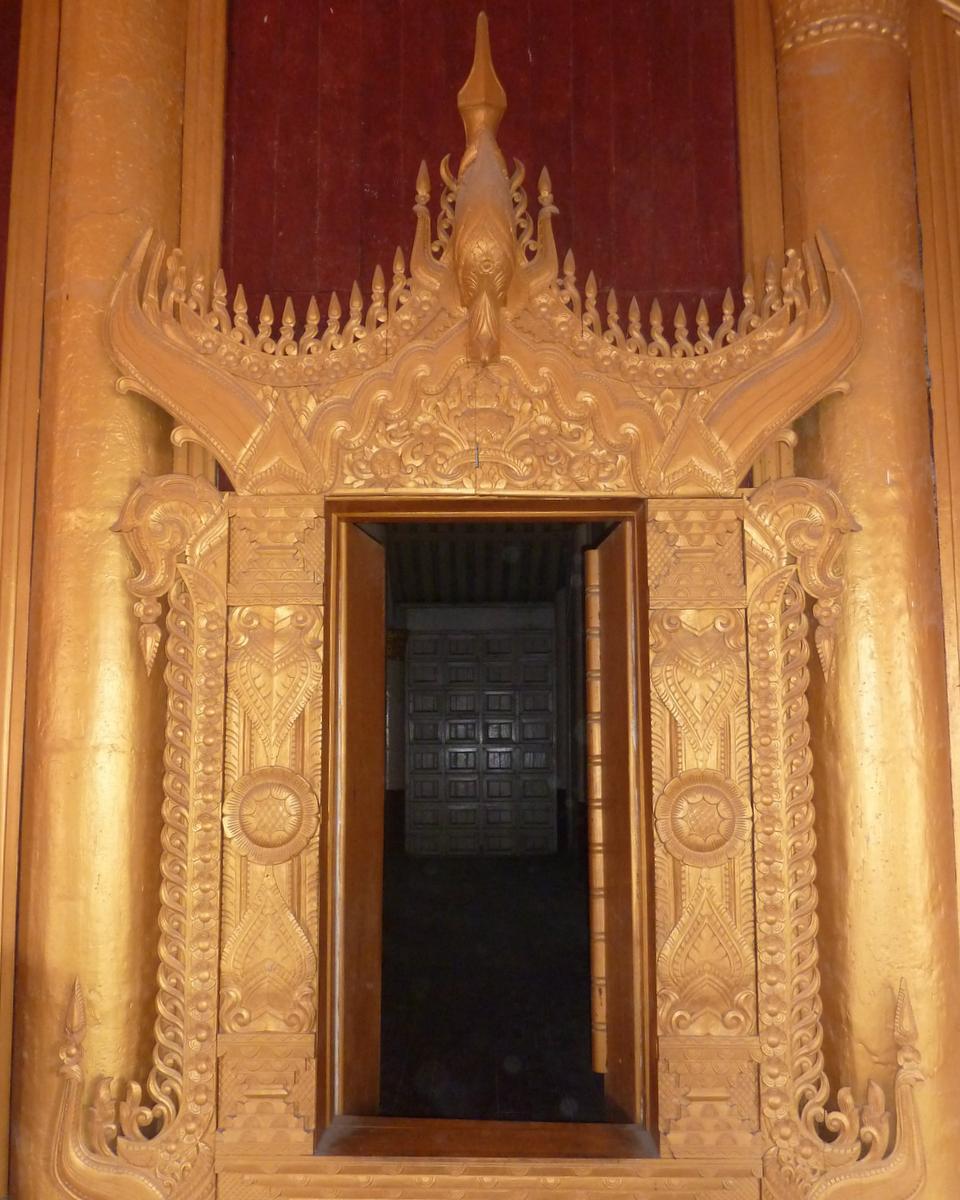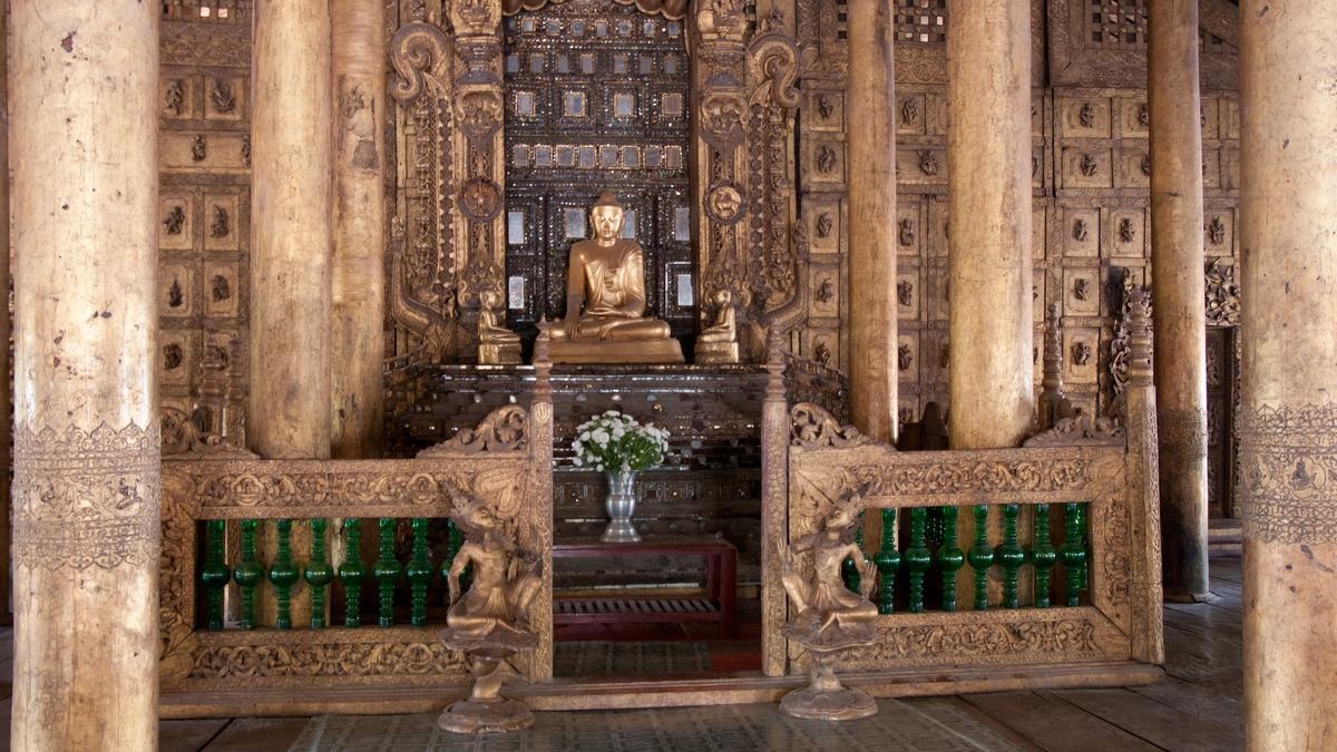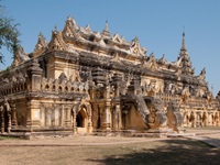 Das Shwenandaw Kloster ist das einzige Gebäude der Königlichen Palastanlage, welches noch im Originalzustand erhalten blieb, weil es um 1880 unter König Thibaw demontiert und außerhalb wieder aufgebaut wurde. Wunderschöne Schnitzereien verzieren das gesamte aus Teakholz gebaute Kloster.