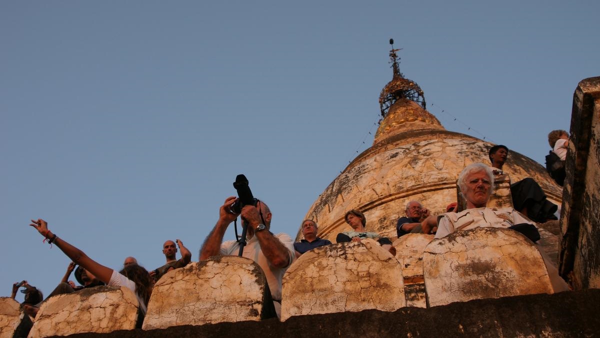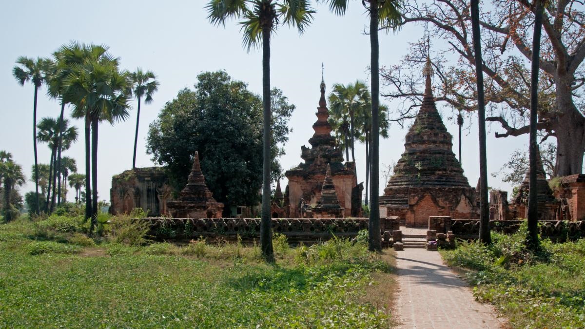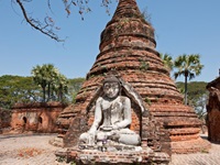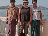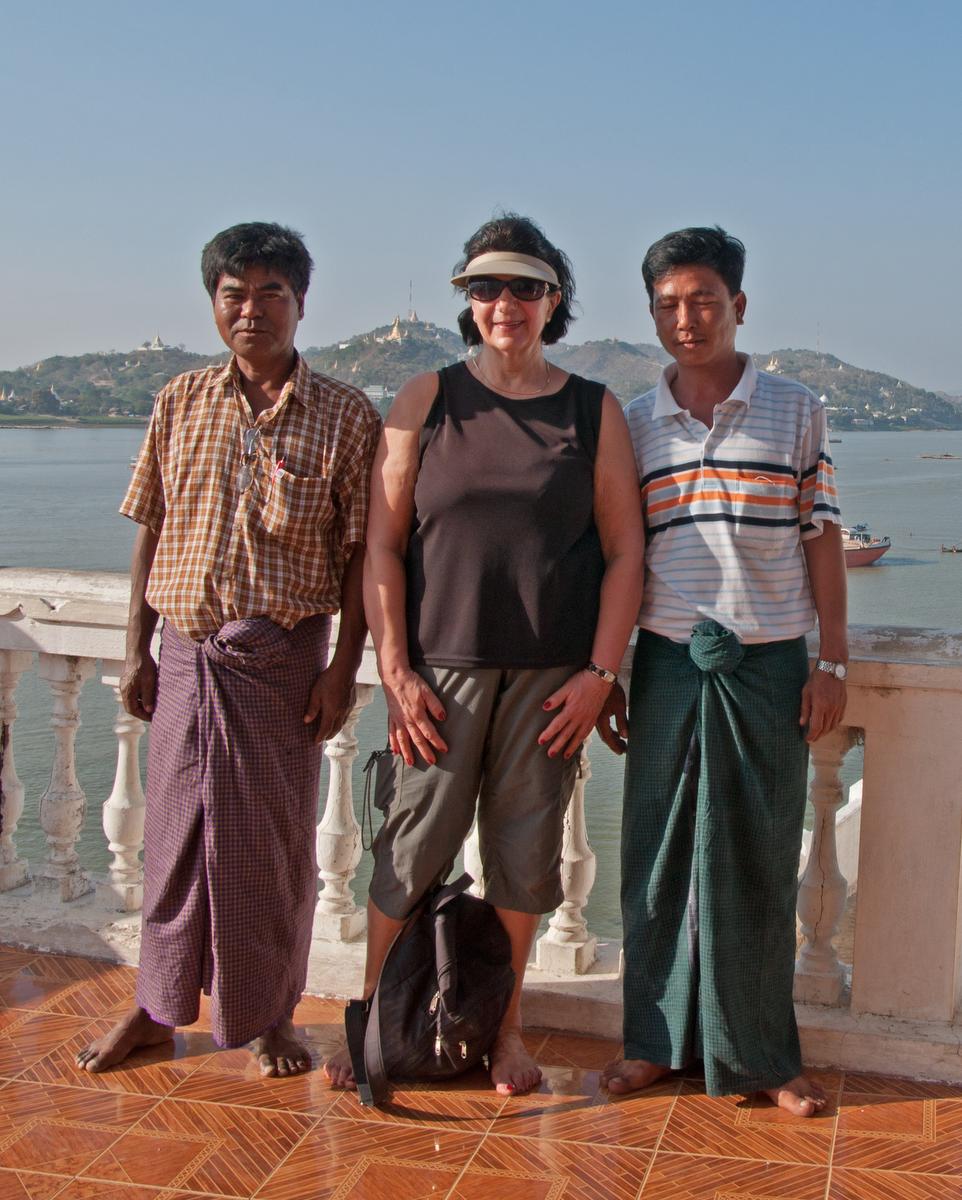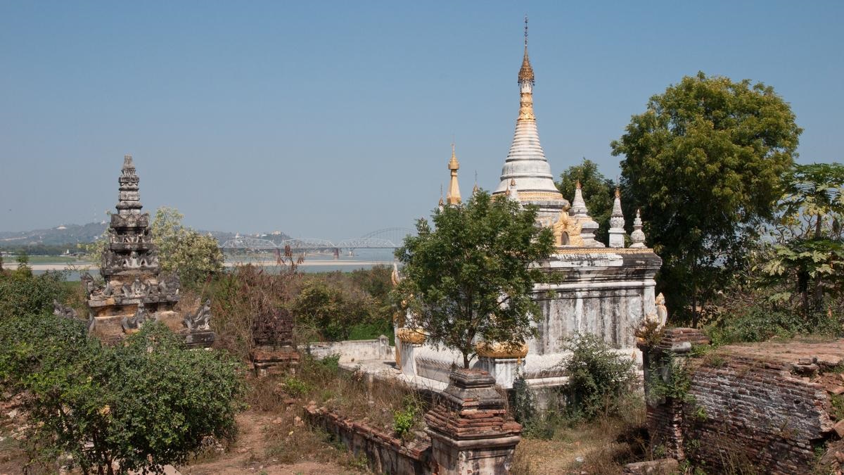 Das Ziel des nächsten Tagesausflugs war die Insel Inwa, die Hauptstadt des früheren Königreiches Ava, gegenüber der Stadt Sagaing. An einem kleinen Nebenfluss des Irrawaddy setzten wir dann ohne unsere Begleiter per Fährschiff über. Hier warteten schon unzähliche Pferdekutschen, um die Ankömmlinge aufzunehmen. Über holprige und ziemlich staubige Wege fuhren wir dann über die Insel und besichtigten einige Altertümer. Ein alter schiefer Turm bot einen wunderschönen Ausblick über die Insel. Vor hier hat man auch einen schönen Blick auf den Tempelberg von Sagaing.