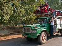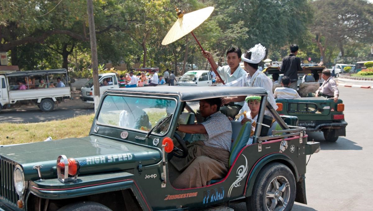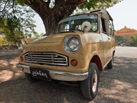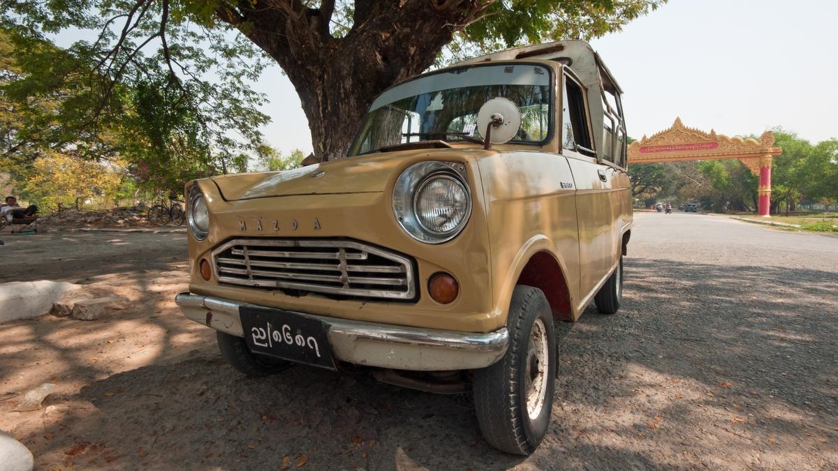 Für unsere Touren in Mandalay suchten wir einen Fahrer. Rechts aus dem Hotel, an der nächsten Straßenecke wurden wir fündig. Nachdem wir das Pickup bestiegen haben, sprang es nicht an. Also stiegen wir in das Fahrzeug nebenan ein. Es war ein Mazda, Bj. 1970, mit Luftkühlung. Lin Lin, der Fahrer hielt kurze Zeit später an und es stieg noch jemand hinzu. Es war Kan Po, der uns als “Reiseleiter” alle sehenswerten Dinge der nächsten Tage auf englisch erklärte.