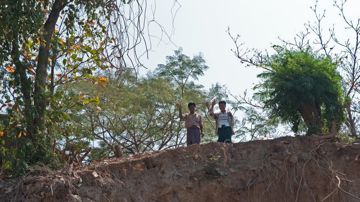 Zurück nach Mandalay mussten wir erst wieder über den Fluss. Hier erstiegen wir einen weiteren Tempel und konnten von hier eine ganze Weile das Treiben unten im Hafen beobachten. Auch unsere Begleiter genossen die Zeit sichtlich. So konnten Sie zur Abwechslung mal etwas anderes sehen, als immer nur in der Stadt an der Straßenecke in einer Abgaswolke zu stehen und auf Fahrgäste zu warten. Gegen Abend ging es dann wieder zurück nach Mandalay, vorbei an Melonenbergen am Straßenrand. So beendeten wir auch den dritten Tag in Mandaly und verabschiedeten uns herzlich von Lin Lin und Kan Po vor unserem Hotel.