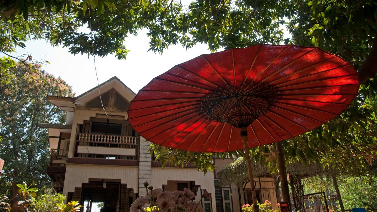 Zum Abschluss erholten wir uns in einem schattigen Gartenrestaurant auf der Insel, wie wir es hier gar nicht erwartet hätten. Schön gedeckte Tische, ein gutes Essen, saubere Toiletten. Mit einem herrlich kühlen Myanmar-Bier spülten wir uns den Staub aus der Kehle. Nachdem wir uns ein wenig erholt hatten, ging es wieder mit der Fähre über den Fluss, wo unser beiden Guides auf uns warteten.