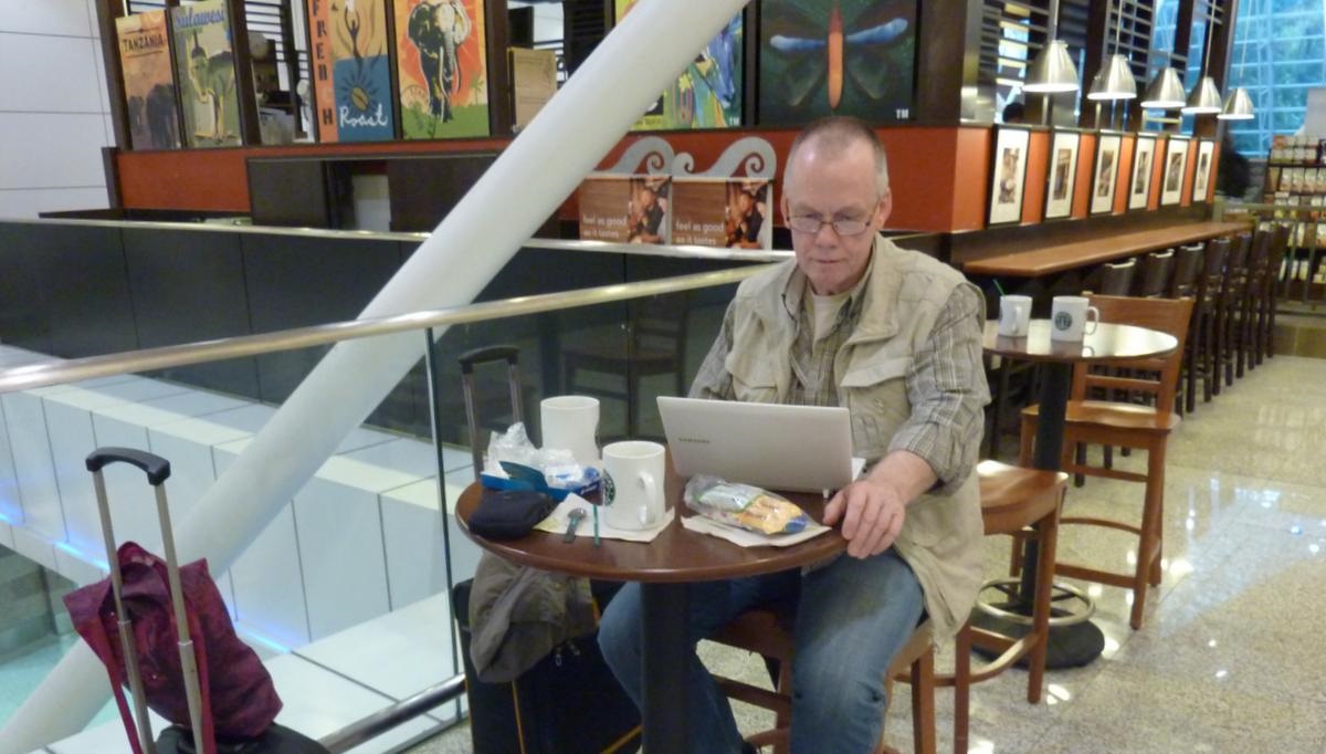 Nach einem kleinen Rundgang in diesem schönen Flughafen, gönnten wir uns erst mal einen Kaffee Latte im Starbucks. Um 10:05 flogen wir dann weiter nach Yangon. Der Flug dauerte 2:30 und bot uns mit leichten Trübungen eine schöne Aussicht über die Inselwelt der thailändischen Westküste. Die Einreise in Myanmar war völlig unproblematisch.