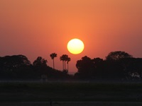 Zum Sonnenuntergang fuhr uns Djodjo zu einem dafür besonders geeignetem Ort. Ein Tempel, den man besteigen konnte. Natürlich waren wir hier nicht allein, sonder Massen von Menschen wollten das Gleiche. So gab es auf dem Tempel ein ziemliches Gedränge, aber die Aussicht war super. Der von den vielen Fahrzeugen aufgewirbelte Staub sorgte für eine besondere Stimmung auf den Fotos.