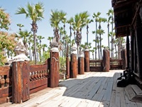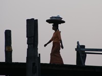 Natürlich darf bei einem Aufenthalt in Mandalay ein Besuch der U-Bein Brücke nicht fehlen. Die lange Teakholzbrücke ist eine sehenswerte Kontruktion, die allerdings im Mittelteil schon durch Beton ersetzt wurde. Wir waren hier zum Sonnenuntergang. Hinter der Brücke war noch ein tempelähnliches Bauwerk zu sehen, das aber in keiner Beschreibung zu finden war. Vielleicht hatte es auch keine besondere Bedeutung. Im Sonnenuntergang sah es jedenfalls aus wie ein Märchenschloss.