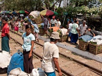 Eine besondere Empfehlung in Yangon ist die Circular Railway. Eine ca. 50 km lange Rundstrecke, die am Hauptbahnhof gegenüber des Traders Hotels beginnt und auch wieder endet. Die Fahrt dauert ca. 3 Stunden. Für 1$ erhält man ein handgeschriebenes Ticket und hat ein Erlebnis, das seinesgleichen sucht. Auf Holzbänken mitten unter den Einheimischen erlebt man ein Kommen und Gehen von Händlern, Marktfrauen, Blumenmädchen, dass es eine wahre Freude ist. Meist hält der Zug auf den Stationen kaum an, es wird im Fahren ein- und ausgestiegen, sogar Eisenbahnschwellen werden eingeladen und fliegen während der Fahrt wieder aus dem Zug. Das ist eigentlich ein Muss in Yangon!