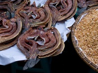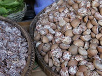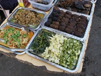 Unweit vom Traders Hotel gerieten wir zufällig in eine Marktstraße. Liebevoll waren die Waren hier angeordnet, fast stillebenartig in geometrischen Mustern. Freundliche Marktfrauen, die sich köstlich amüsierten, als wir sie fotografierten.