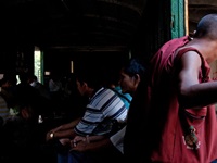 Gerade richtig zur Mittagszeit kamen wir zum Mahagandhayon Kloster, um der Speisung der Mönche beizuwohnen. Ein ziemlicher Touristenrummel. Aber unter den Touristen ware auch Gruppen von anderen Mönchen, die ebenso fleißig fotografierten. Wir wurden zuerst in die “Küche” geführt, wo wir die Zubereitung der Mahlzeiten beobachten konnten. Dann ging es zur Essensausgabe. Geduldig warteten die Mönche, bis ihnen das Essen zugeteilt wurde, um es dann in einem großen Gemeinschaftssaal zu sich zu nehmen.