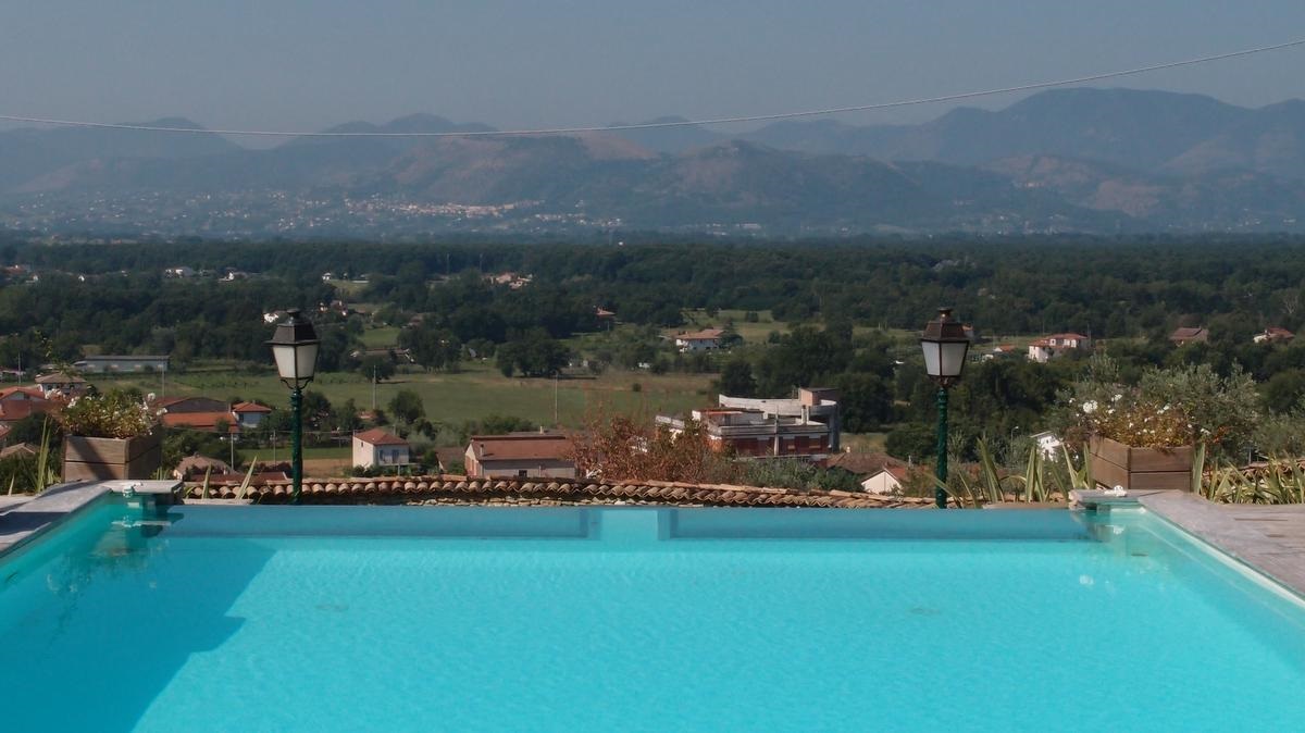 Auf dem Rückweg, bevor es morgen wieder von Rom nach Hause geht, haben wir noch eine Übernachtung in Colfelice eingeplant. Wir wohnen hier in der Villa Madame, ein stilvoll eingerichtetes Haus. Die Anlage ist ein kleines Paradies. Hier fühlt sich der Gast wirklich wohl. Am Pool wurde uns eine Obstschale serviert und abends vor dem Zimmer brachte uns die nette Wirtin zwei Flaschen Bier mit einem Schälchen Oliven. Das Frühstück wurde liebevoll serviert mit eigener Marmelade und im Korb mit köstlichem Gebäck waren sogar zwei Stückchen in Hausfarbe.