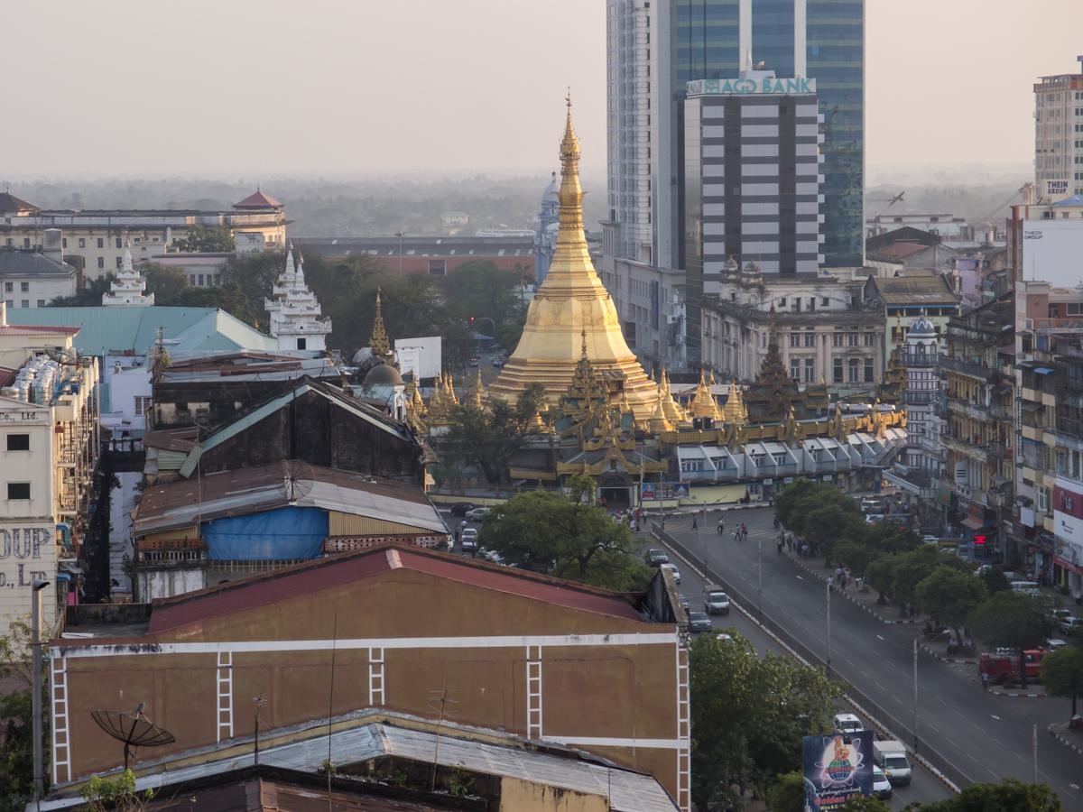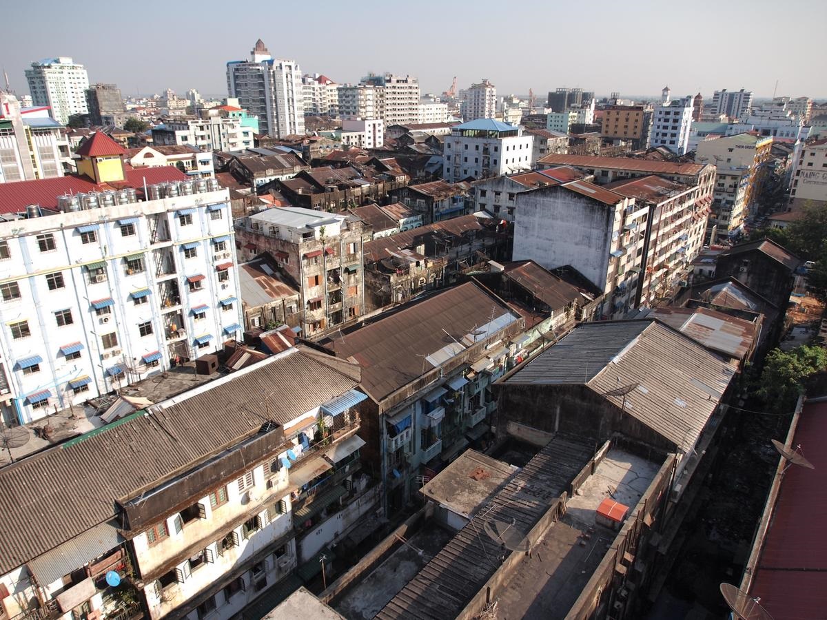 In Yangon angekommen, fielen uns sofort im Vergleich zum letzten Jahr die vielen neuen Autos auf. Als Ergebnis der allgemeinen Preissteigerung wohnten wir diesmal auch nicht mehr im Traders Hotel, sondern gegenüber im East Hotel. Die Zimmer sind sauber, das Personal sehr freundlich, aber wir konnten uns ab und zu einen wehmütigen Blick über die Straße nicht verkneifen. Etwas gewöhnungsbedürftig im East Hotel sind die Zimmer. Die Abtrennung zum Sanitärraum ist lediglich ein Vorhang. Vom Schreibtisch aus hat man den vollen Überblick über Toilette und Dusche und vom Dach einen herrlichen Blick auf die Sule-Pagode.