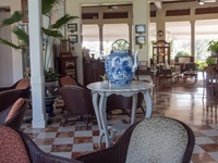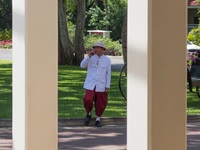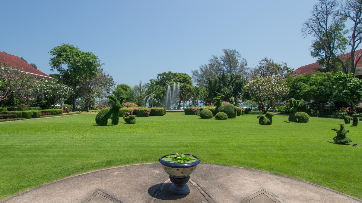 Unsere nächste Unterkunft war das Centara Grand Beach Resort im Zentrum von Hua Hin. Im Ruen Kanok bot man uns einen kostenlosen Transfer an (toller Service!). Wir hatten das Glück, ein Zimmer im legendären denkmalgeschützten Railway-Wing zu beziehen. Die Zimmer im original Kolonialstil, ausgestattet mit riesigen Betten und Fotos aus alten Zeiten, das Bad mit alten Armaturen. Der LCD-Fernseher und die Klimaanlage waren Zugeständnisse an die modernen Zeiten. Ein Traum! Das Resort ist umgeben von einem großen Park mit diversen Pools. Bei der Wartezeit, bis die Zimmer bezugsfertig waren, konnte schon ein Parkbewohner beobachtet werden.