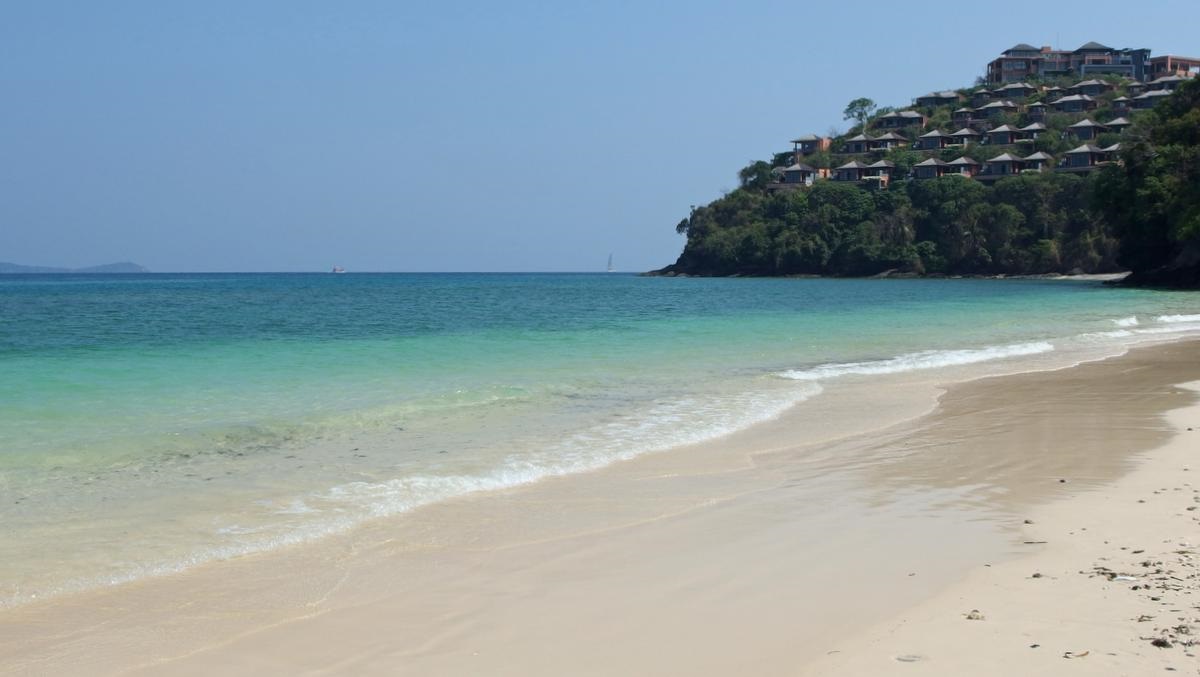 Das Kantary Hotel hat keinen eigenen Strand, es kann der vom Cape Panwa Hotel mitbenutzt werden. Ein Shuttle steht ständig zur Verfügung und bringt uns über den Berg (5 min.) und auch wieder zurück. Zur Liegewiese führt eine Bahn hinunter, wenn man keine Treppen steigen will. Hier gibt es Liegen und Handtücher. Der Strand ist feinsandig und wird ständig sauber gehalten. Vom Strand aus kann man auch das wunderschöne alte Panwa-House besichtigen.