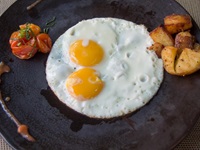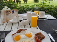 Einen Punkt Abzug gibt es fürs Frühstück. Von 3 Spiegeleiern waren 2 missraten, ich bin dann auf Rührei umgestiegen.