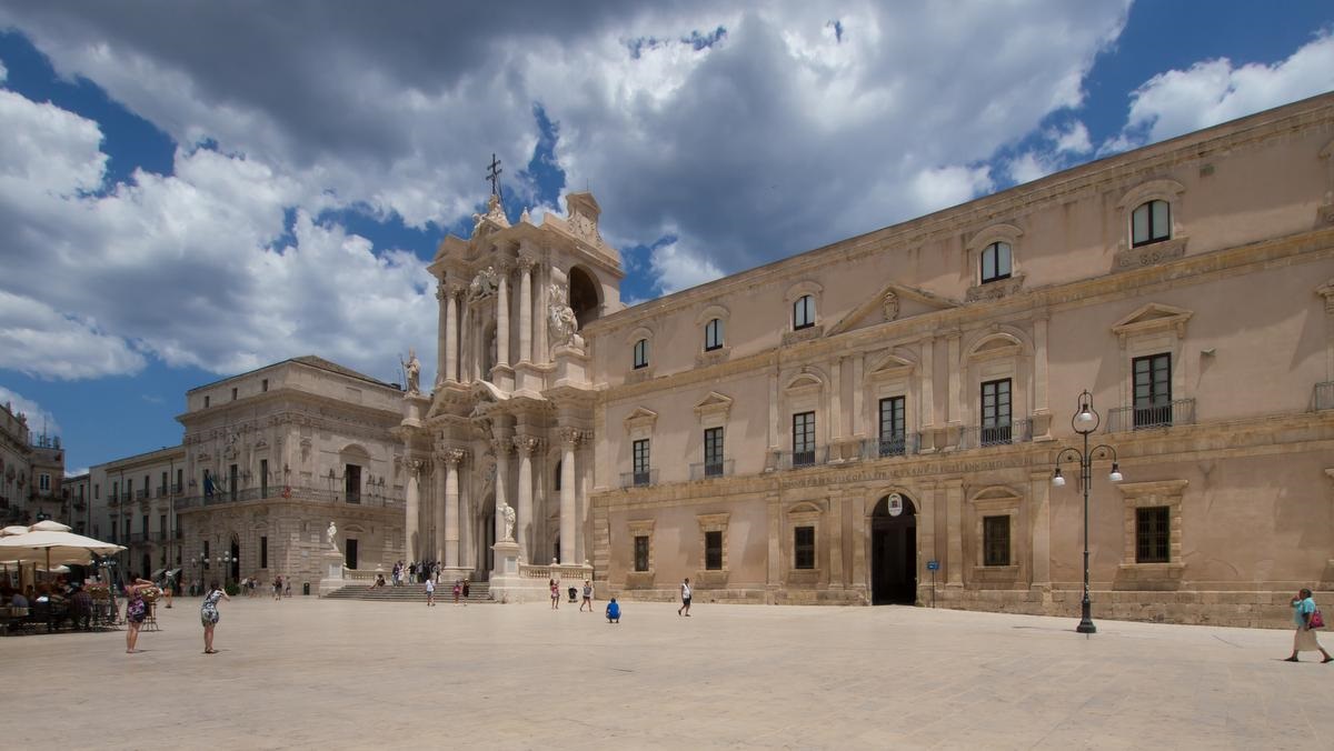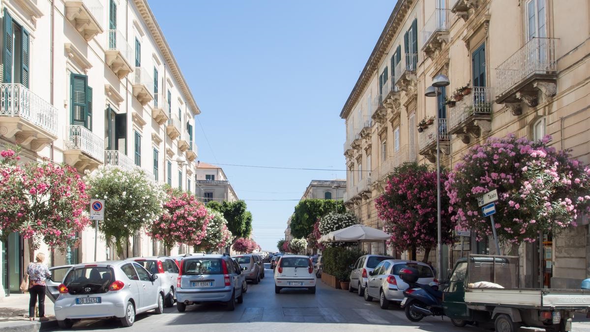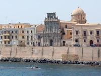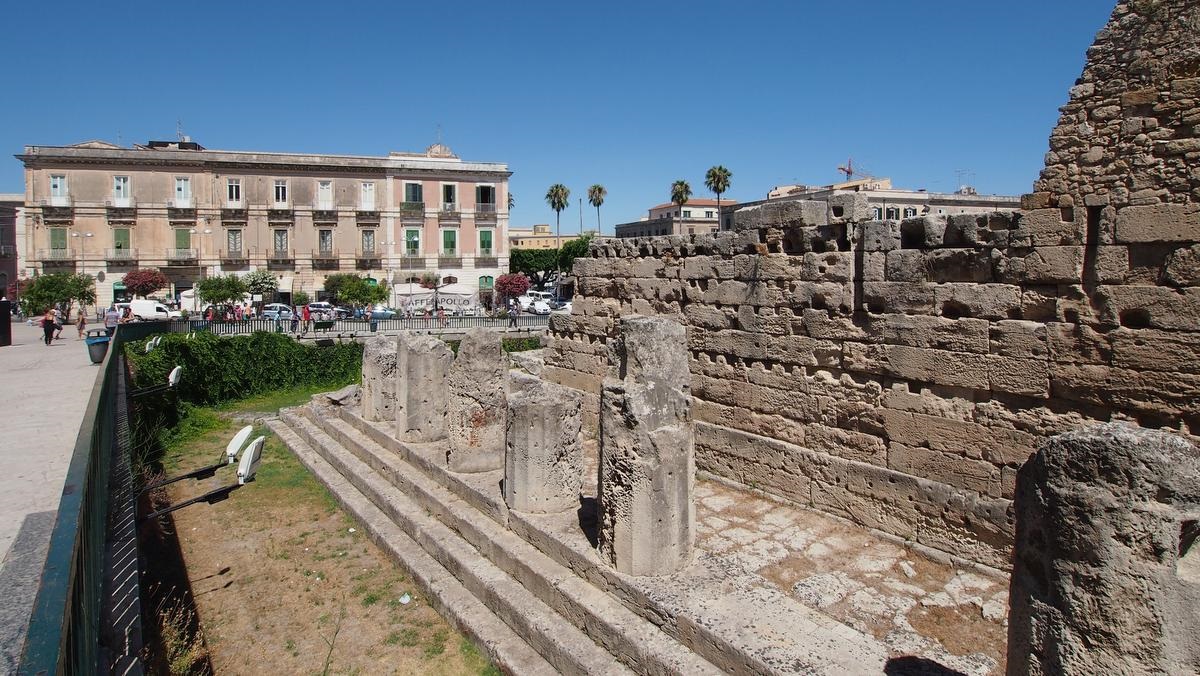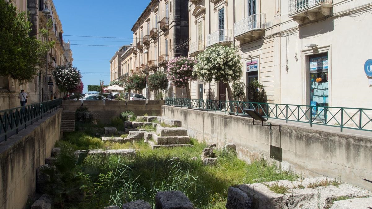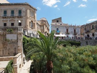 Die sehenswerte Altstadt von Syrakus befindet sich auf der Halbinsel Ortigia. Das Auto stellt man am Besten vor der Brücke auf einem großen Parkplatz ab und erkundet die Stadt zu Fuß. Es gibt viel zu sehen, so dass man schon bis 4 Stunden Parkzeit einplanen kann. Die Kathedrale Santa Maria delle Colonne entstand durch Umbau des alten dorischen Athene-Tempels.