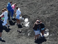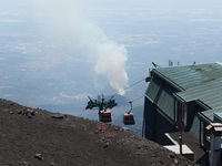 Eine Tour auf den Ätna darf natürlich auch nicht fehlen. Allerdings ist das immer wetterabhängig. Wir hatten an unserem geplanten Tag herrliches klares Wetter. Der "Aufstieg" besteht aus 3 Etappen. Zuerst mit dem Auto zur Talstation der Seibahn. Für 30€ kommt man dann auf eine Höhe von ca. 2500 m. Wenn man will, kann man natürlich auch laufen. Wir sahen einige Leute von der Seilbahn aus, aber bei dem Schotter kann das nicht wirklich Spaß machen. Oben angekommen kann man für weitere 30€ mit dem Allradbus bis auf ca. 3000 m kommen. Hier pfeift ganz ordentlich der Wind und es ist ziemlich kühl. Nach einer geführten Tour von 1 Std. ging es dann wieder hinunter.
