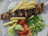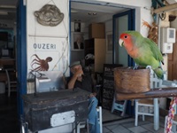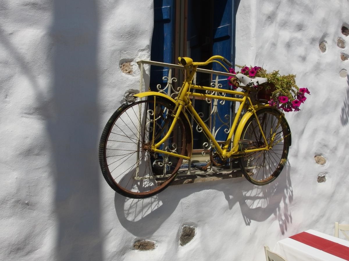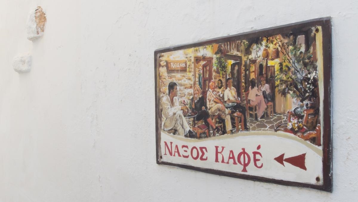 Wenn wir nicht gerade eine länger Tour vor uns hatten, gingen wir zuerst runter in die Stadt. Ein kleiner Bummel durch die Gassen, durch die meistens ein kühlender Wind weht. Das kleine Naxos Kaffee lädt zum Verweilen ein. An einem Tag kamen wir an einem offenen Fenster vorbei, das den Blick in eine Küche ermöglichte. Leckere Gerüche strömten nach draußen. Man entdeckte uns: "Έλα έλα" tönte es von drinnen, "kommt rein". Wir bekamen ein kleines Päckchen überreicht, ein leckeres Hühnerbeinchen mit Kartoffeln, wie sich später herausstelle. Mit etwas Tomatensalat ein leckeres Mittagessen. Das Küchenpersonal ließ sich auch gerne fotografieren. Ja, das ist Griechenland! Der Vormittagsbummel endete dann meistens im Aktaion-Kaffee am Hafen.